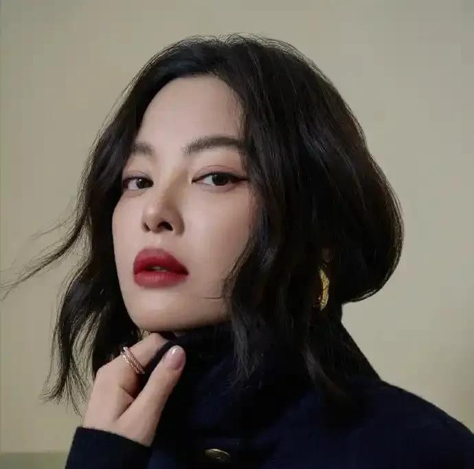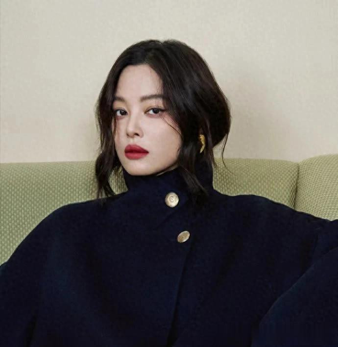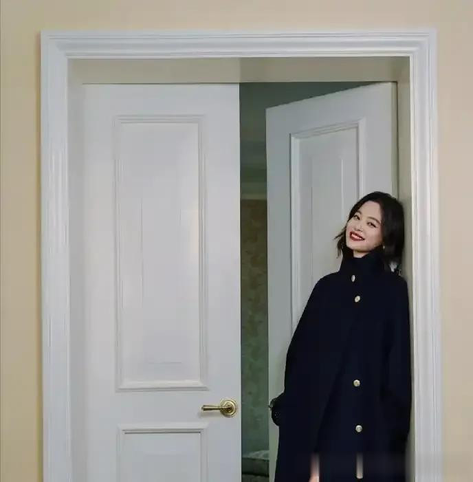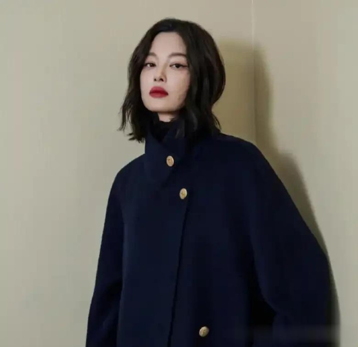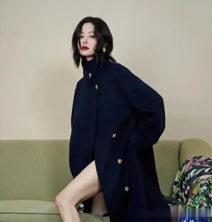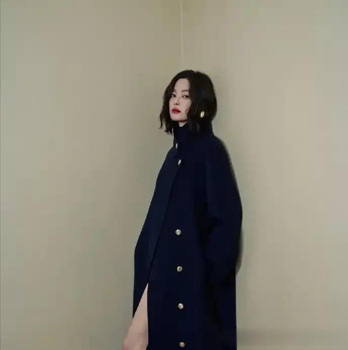 辛芷蕾短卷发“超惊艳”! 穿蓝色金属扣大衣搭高跟鞋, 长腿吸睛!